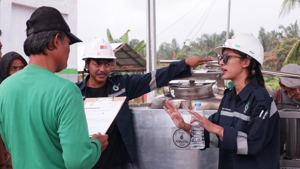 Hasil asesmen inilah yang menjadi dasar penyusunan rekomendasi pengelolaan sampah. Rekomendasi tidak bersifat seragam, melainkan disesuaikan dengan konteks masing-masing mitra. Di dalamnya mencakup strategi pendekatan kepada warga atau pekerja, skema pemilahan dan alur pengelolaan sampah, hingga perhitungan kapasitas serta spesifikasi mesin yang benar-benar dibutuhkan. Dengan cara ini, solusi yang dirancang tidak berdiri di atas asumsi, melainkan berangkat dari realitas sehari-hari. Setelah disepakati, proses pendampingan dilakukan secara menyeluruh: mulai dari pendampingan pemilahan di tingkat masyarakat, pembentukan dan penguatan tim waste management, hingga pelatihan operator lokal untuk mengoperasikan mesin pirolisis.